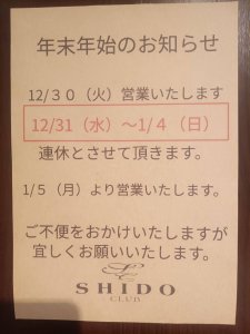 今日でSHIDOは仕事納めとなりました。